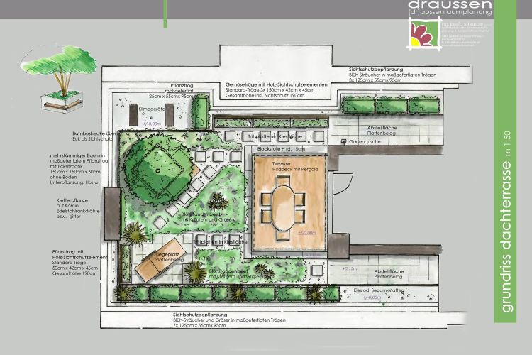 die urpsrünglich mit betonplatten ausgelegte dachterrasse wird zur grünen oase.