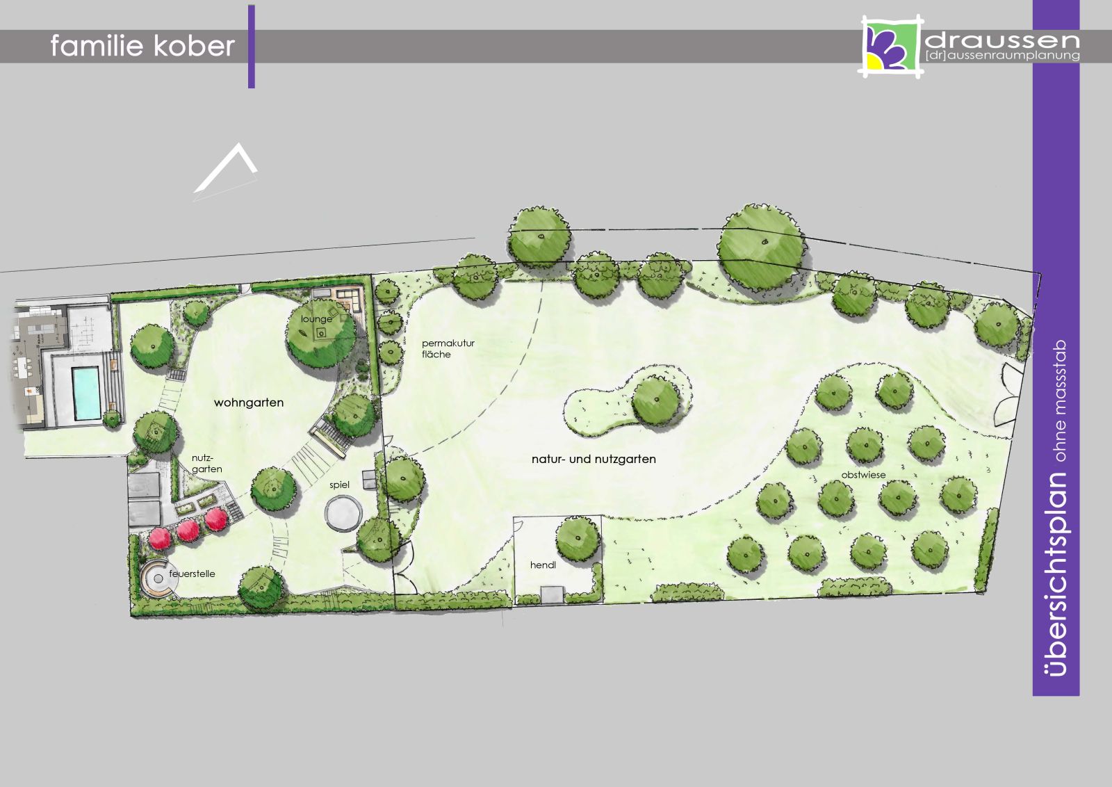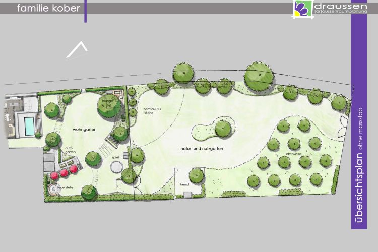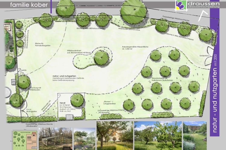und den nutzbereich mit viel platz für obstwiese, hendlstall und permakulturgarten.