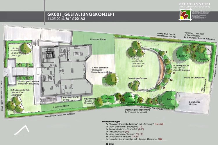 eine zusätzliche herausforderung waren die 22 !! ersatzpflanzungen die gemäß wiener baumschutzgesetz auf dem grundstück unterzubringen waren.